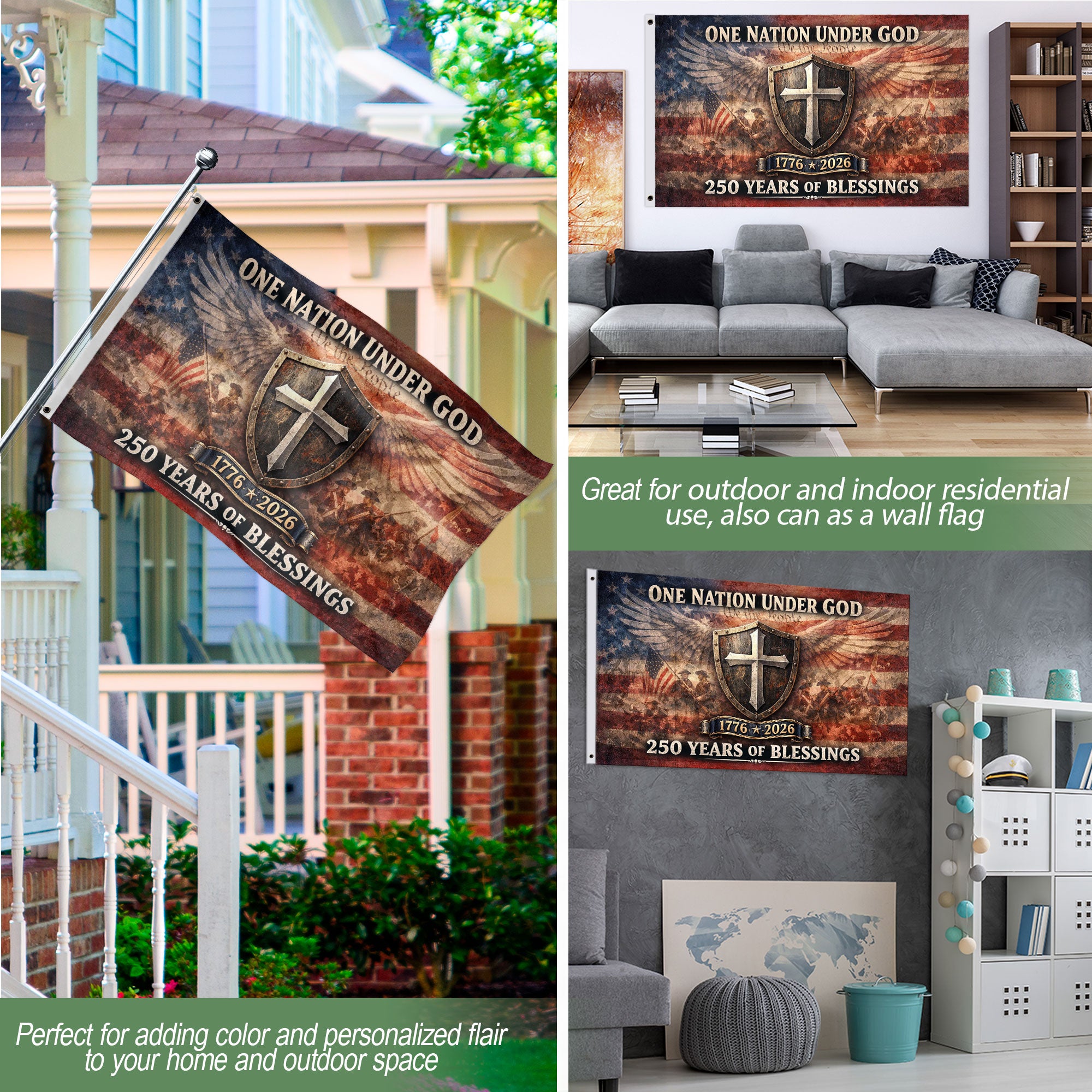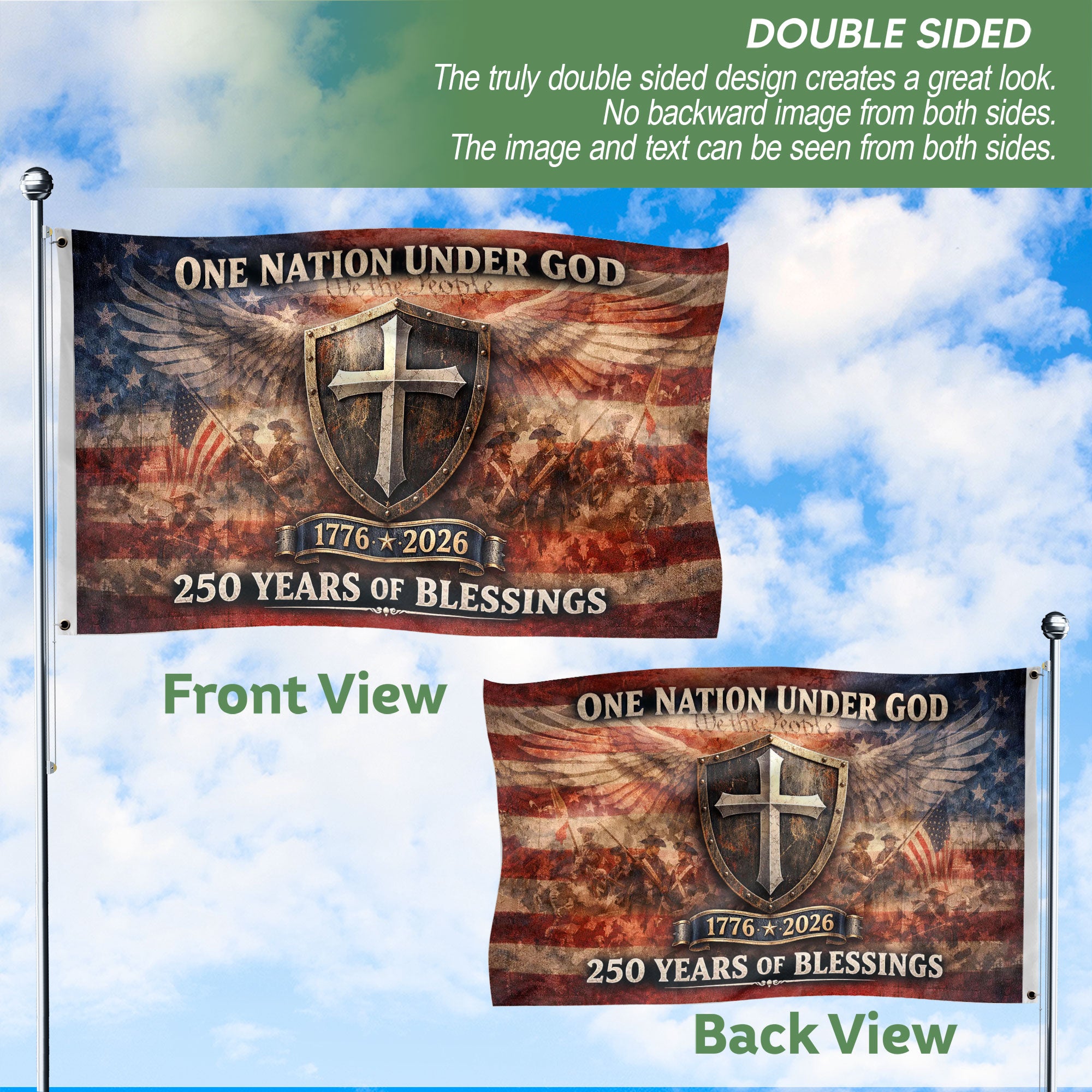 250 Years America Anniversary Flag, 1776-2026 Double Sided - Patriotic One Nation Under God House Banner